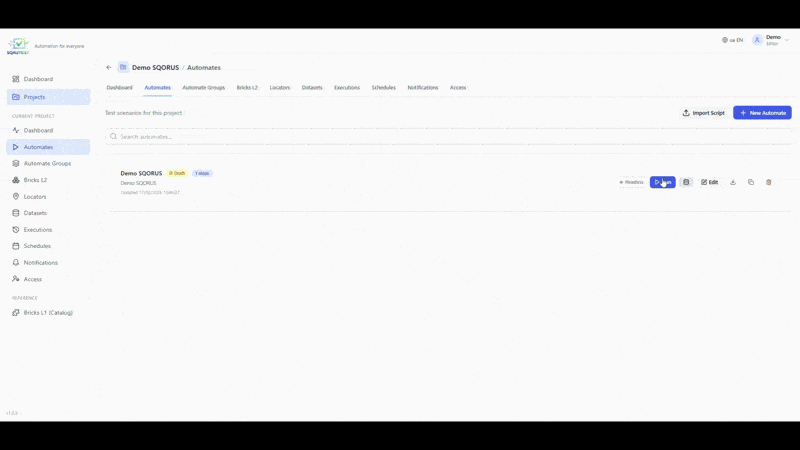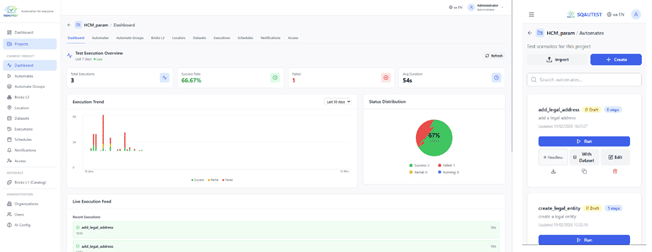 SQAUTEST est la solution développée par SQORUS pour rendre l’automatisation accessible à tous. Que vous souhaitiez automatiser des tests ou des processus métier, SQAUTEST permet à n’importe quel collaborateur (QA, fonctionnel ou métier) de concevoir, d’exécuter et de maintenir des scénarios automatisés, sans compétence technique nécessaire.